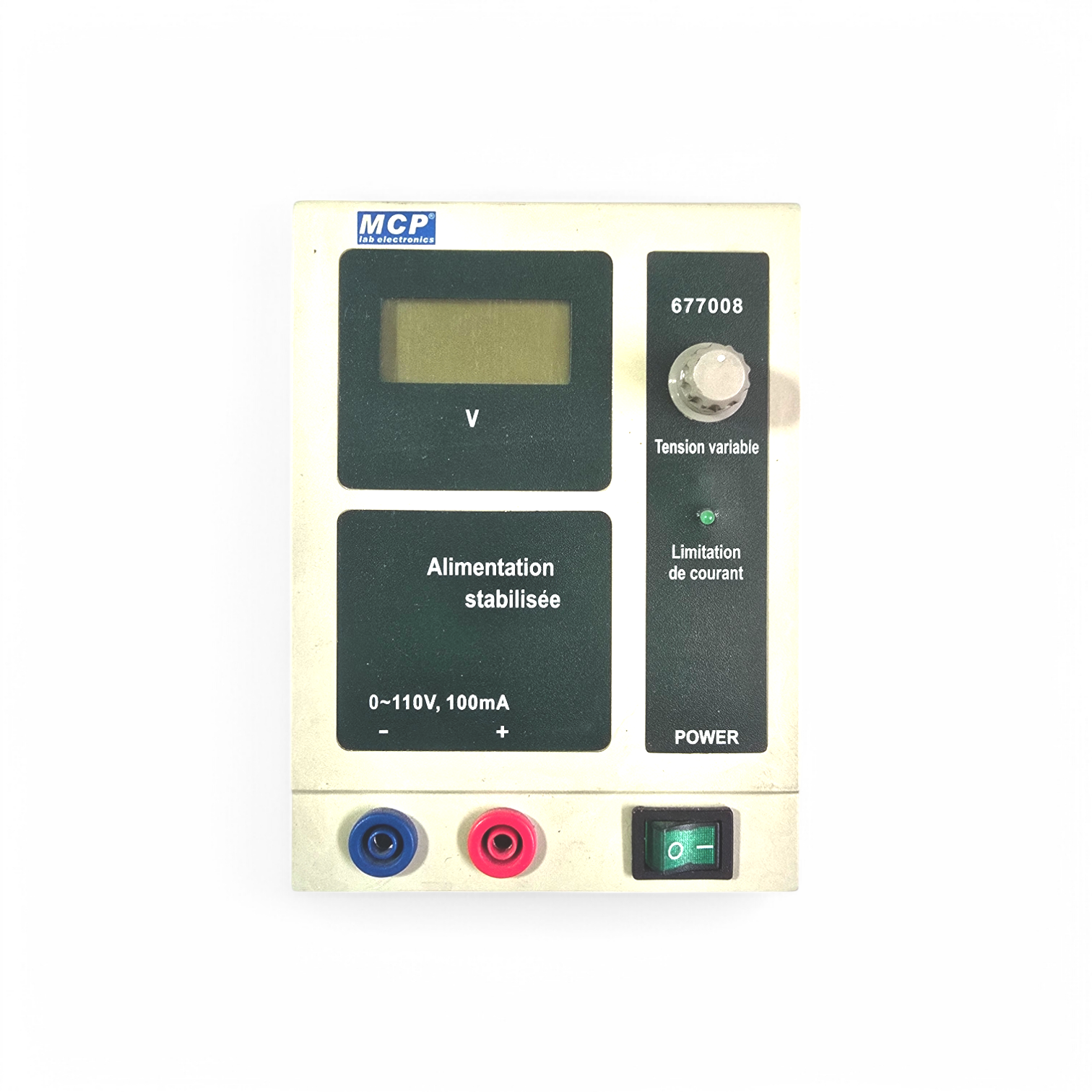 Cette alimentation stabilisée de laboratoire de la marque MCP est un outil essentiel pour tout environnement nécessitant une source de tension et de courant contrôlée avec précision. Avec une plage de tension variable de 0 à 110V et une limitation de courant de 100mA, elle offre une flexibilité remarquable pour une variété d’applications électroniques.