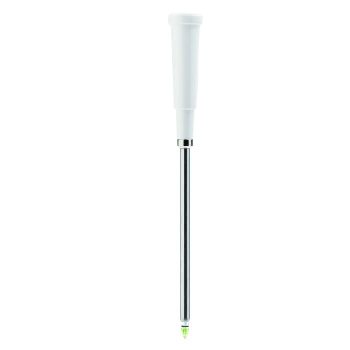 Cette électrode de pH spécialisée offre de nombreuses fonctionnalités qui améliorent les tests de pH pour les producteurs de fromage. La gaine robuste en acier inoxydable associée à la pointe de détection conique permet une pénétration dans le fromage à différents moments du processus de production. Un capteur de température intégré garantit également que toutes les mesures de pH sont compensées pour la température sans avoir besoin d’une sonde de température séparée.