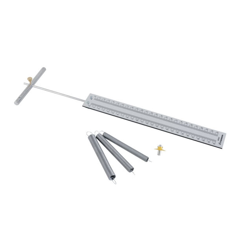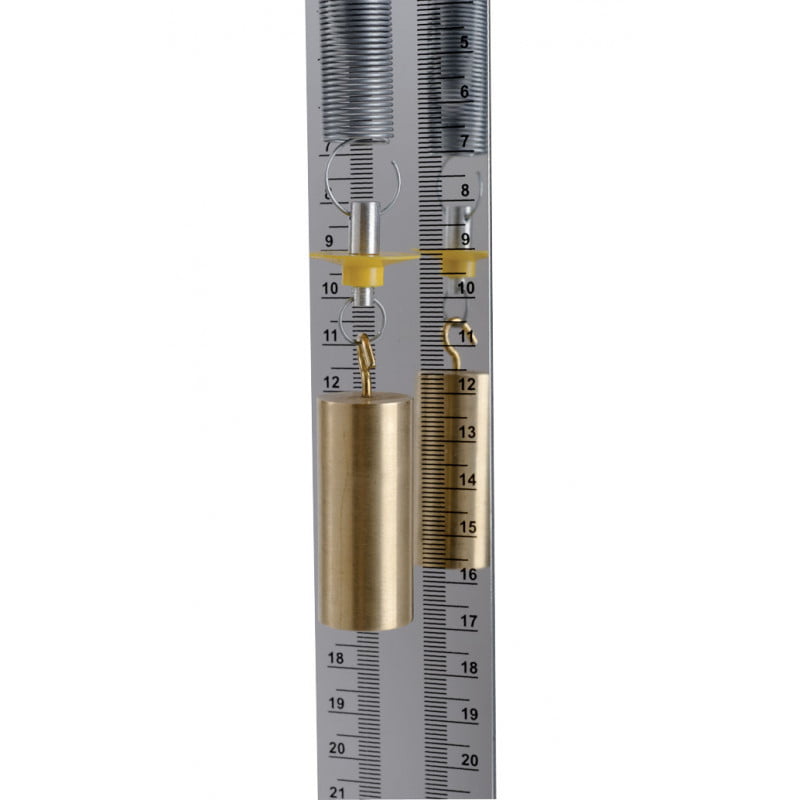 Il se démarque par sa très grande simplicité d’utilisation : un ensemble compact qui se fixe aisément sur un support vertical grâce à un seul axe ; un dispositif original de mesure de l’allongement qui élimine les erreurs de lecture dues à la parallaxe lors de l’étalonnage du ressort ; un moyen d’accrochage simple de la masse au ressort qui diminue les sauts intempestifs de celle-ci.
