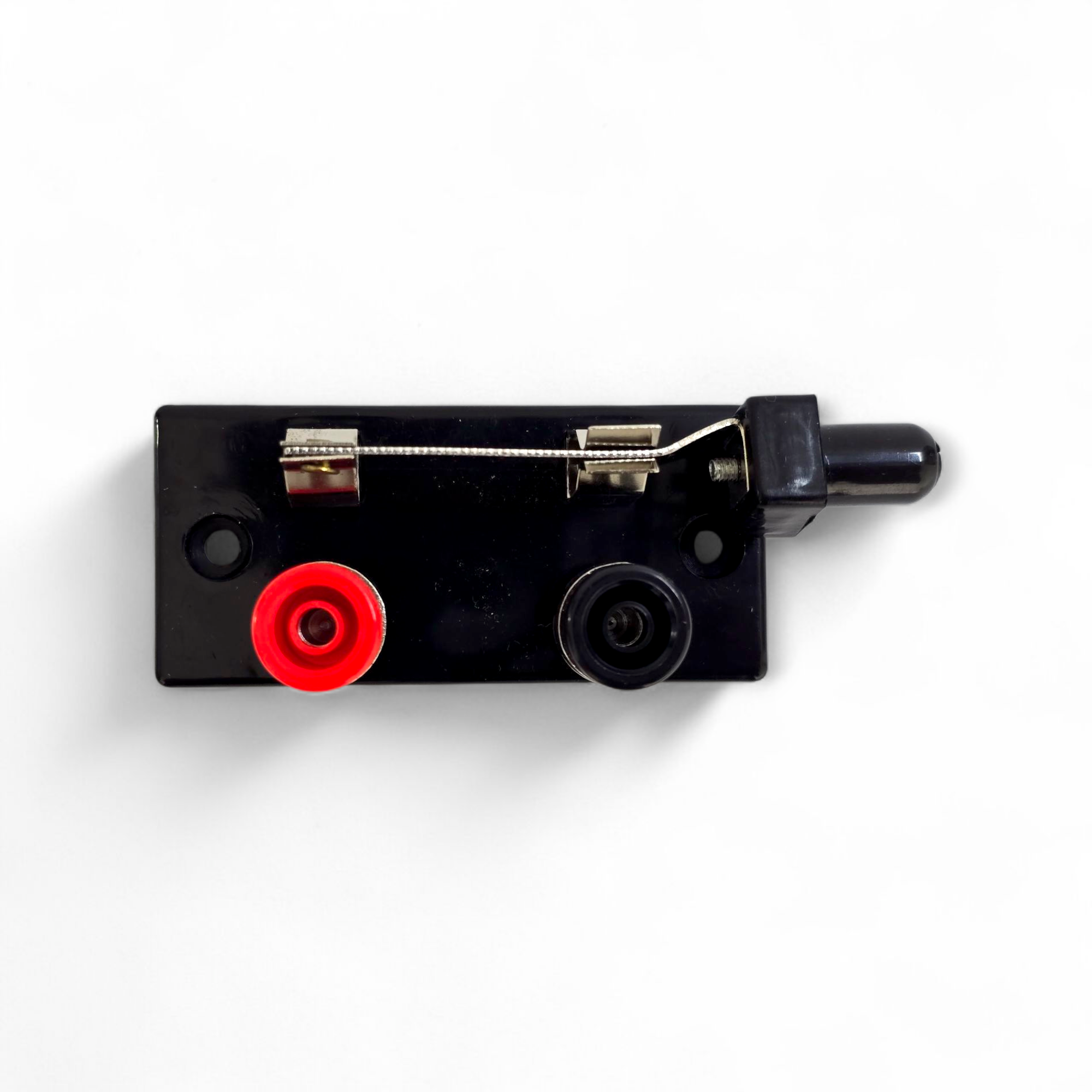 Interrupteur mono polaire à levier monté sur un boîtier isolant. Les connexions électriques sont réalisées par l’intermédiaire de douilles de raccordement double puits.