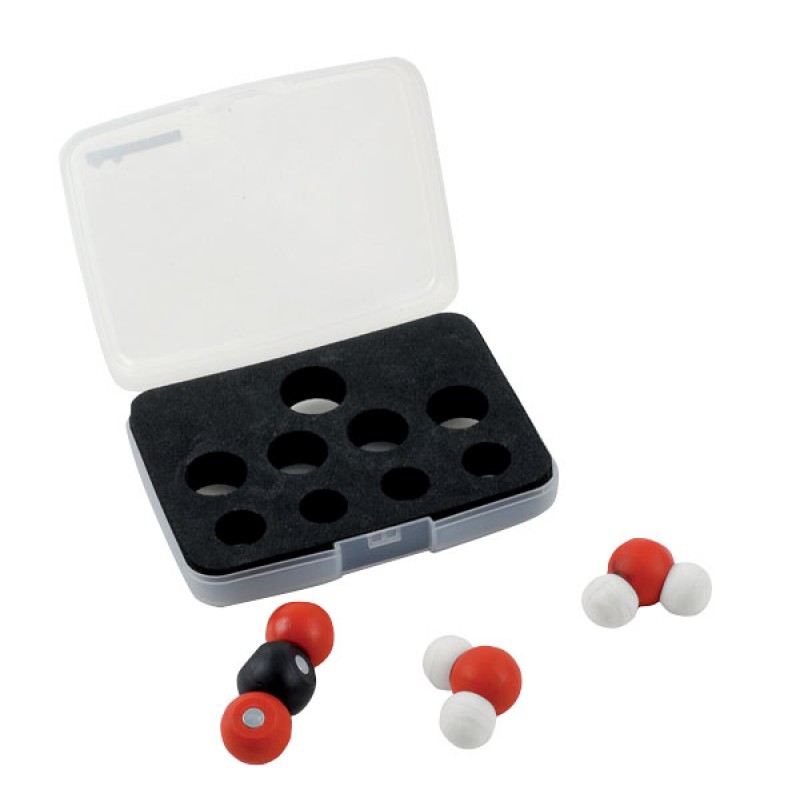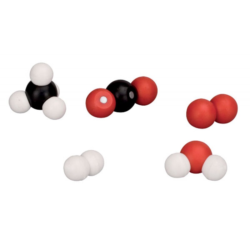 Voici enfin des modèles moléculaires permettant de passer des réactifs aux produits sans changer de maquettes d’atomes. L’assemblage de maquettes d’atomes de carbone, d’hydrogène et d’oxygène se fait magnétiquement sans avoir besoin des traditionnels bâtonnets. Les aimants sont orientés et disposés de façon à ce que les maquettes des atomes de carbone et d’oxygène permettent des liaisons tétraédriques ou linaires.