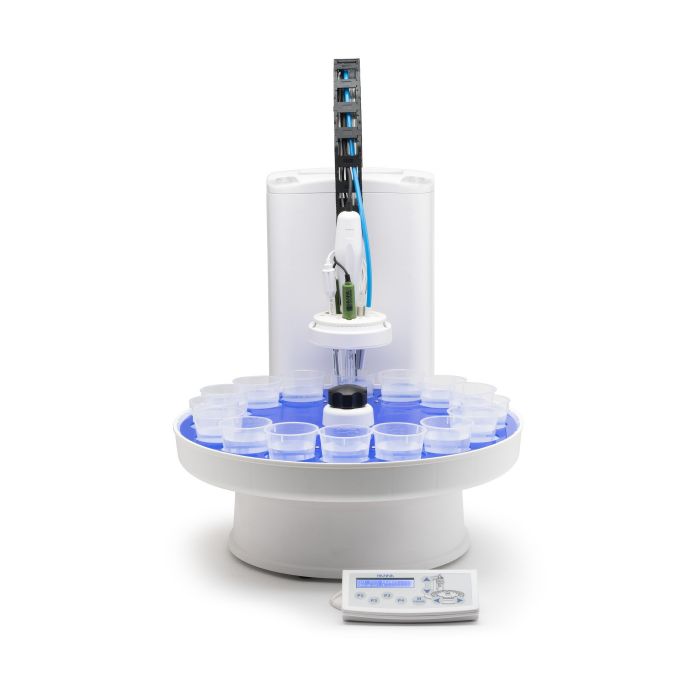 Le HI922 est capable d’automatiser des échantillons à l’aide d’un plateau de 16 échantillons ou d’un plateau de 18 échantillons. Le plateau de 16 échantillons contient des béchers de 150 ml; le plateau de 18 échantillons contient des béchers de 100 ml. Les plateaux de l’échantillonneur automatique sont composés de matériaux résistants aux produits chimiques et sont amovibles pour permettre une manipulation aisée. Les plateaux allant au lave-vaisselle offrent aux utilisateurs un moyen simple et rapide de nettoyer régulièrement.