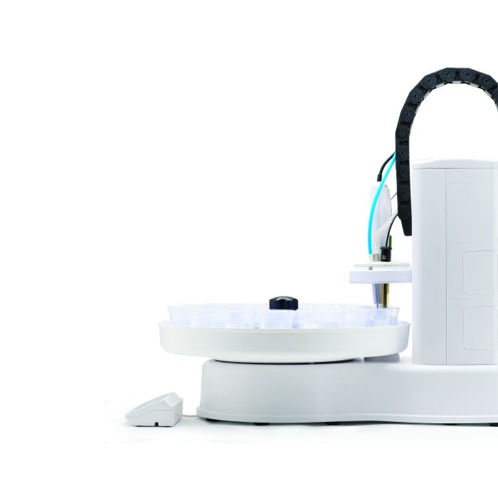 Un agitateur magnétique est intégré à chaque plateau de l’échantillonneur automatique. Les utilisateurs doivent simplement ajouter un petit barreau magnétique à chaque bécher pour assurer l’homogénéité lors des titrages. Un agitateur à hélice facultatif peut également être installé pour une utilisation à la place de l’agitateur intégré. Le HI922 permet aux utilisateurs de régler facilement la vitesse d’agitation des agitateurs incorporés et suspendus pour une utilisation optimale.