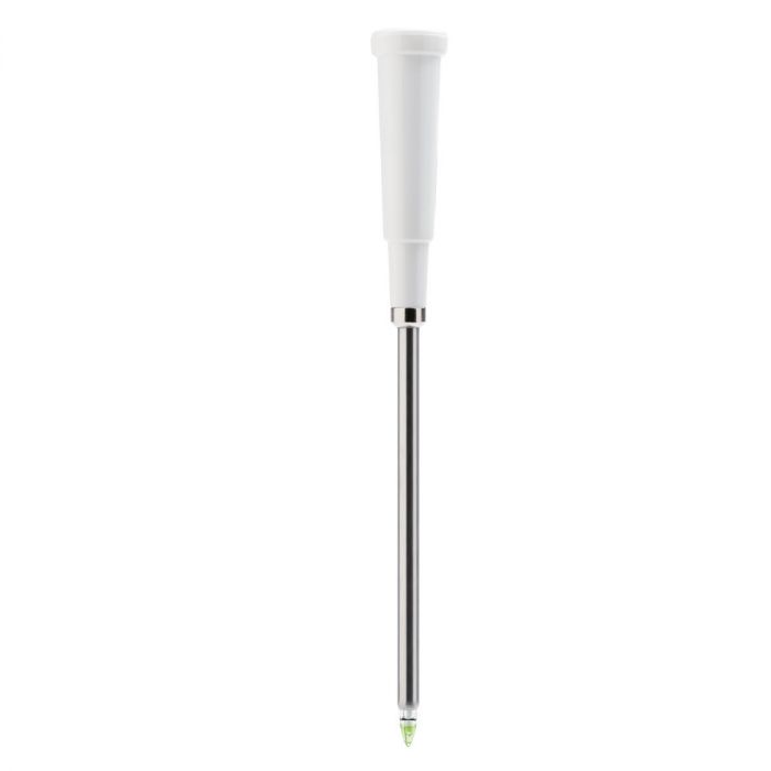Le HI99165 utilise l’électrode de pH amplifiée en acier inoxydable FC242D. Cette électrode spécialisée offre de nombreuses fonctionnalités qui améliorent les tests de pH pour les producteurs de fromage. La gaine robuste en acier inoxydable associée à la pointe de détection conique permet une pénétration dans le fromage à différents moments du processus de production. Un capteur de température intégré garantit également que toutes les mesures de pH sont compensées pour la température sans avoir besoin d’une sonde de température séparée.