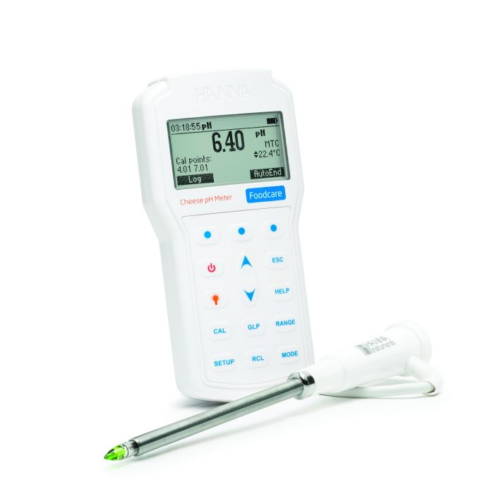 Les produits à base de fromage peuvent poser un certain nombre de problèmes à la personne qui doit mesurer le pH. Les produits à base de fromage ont tendance à être solides à semi-solides. Les deux types d’échantillons vont recouvrir la surface sensible de la membrane de verre et / ou obstruer la jonction de référence. Le FC2423 fourni avec le HI98165 est spécialement conçu pour mesurer le pH dans les fromages. De forme conique dans un corps en acier inoxydable résistant de 5 mm de diamètre pour une pénétration aisée dans le fromage sans laisser de gros trou à une jonction ouverte qui résiste au colmatage; Le FC2423 est une électrode de pH polyvalente idéale pour le fromage. Le FC2423 se connecte au HI98165 avec un connecteur DIN étanche à connexion rapide, permettant une fixation sécurisée et sans filetage.