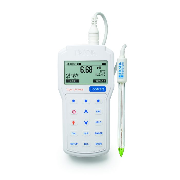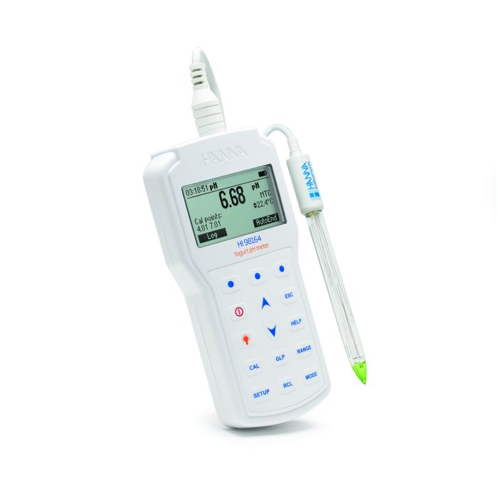 En plus de recevoir une électrode de pH unique conçue pour le yaourt, le HI98164 est doté de la fonction unique CAL Check ™ de Hanna qui alerte l’utilisateur des problèmes potentiels au cours du processus d’étalonnage. Ceci est très important pour le transformateur car il est probable que la sonde sera recouverte des solides présents dans le produit alimentaire mesuré. Ce revêtement peut facilement entraîner des erreurs dans la mesure du pH. En comparant les données d’étalonnage précédentes à l’étalonnage en cours, le lecteur informera l’utilisateur, par des messages à l’écran, lorsque la sonde doit être nettoyée, remplacée ou si le tampon de pH peut être contaminé. Après l’étalonnage, la condition globale de la sonde est affichée à l’écran sous forme de pourcentage compris entre 0 et 100% par incréments de 10%. La condition de la sonde est affectée à la fois par les caractéristiques de décalage et de pente de l’électrode de pH, que l’on peut trouver dans les données BPL.