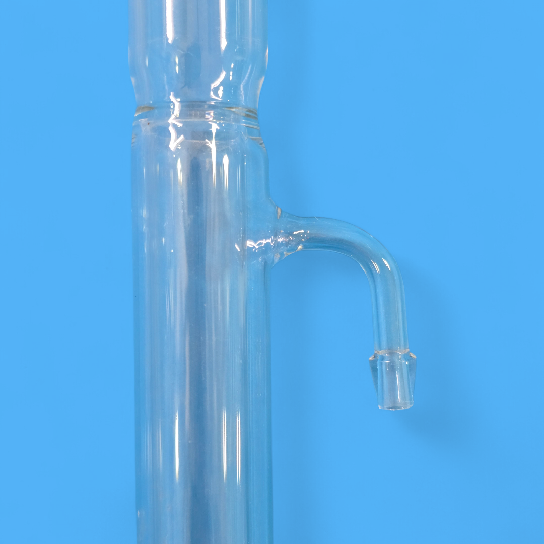 L’eau froide entre par l’embout inférieur et ressort par l’embout supérieur, assurant un refroidissement homogène des vapeurs circulant dans le tube central.