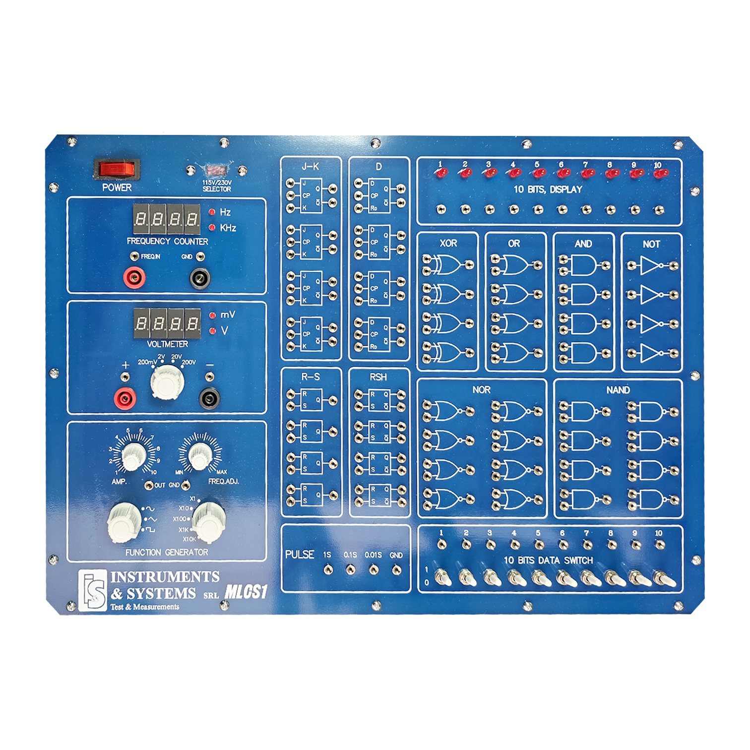 Le module IS-MLCS1 permet l’étude des dispositifs digitaux liés à la logique combinatoire et aux familles logiques CMOS et TTL. Il nécessite uniquement une source d’alimentation de 115V/230V pour fonctionner.