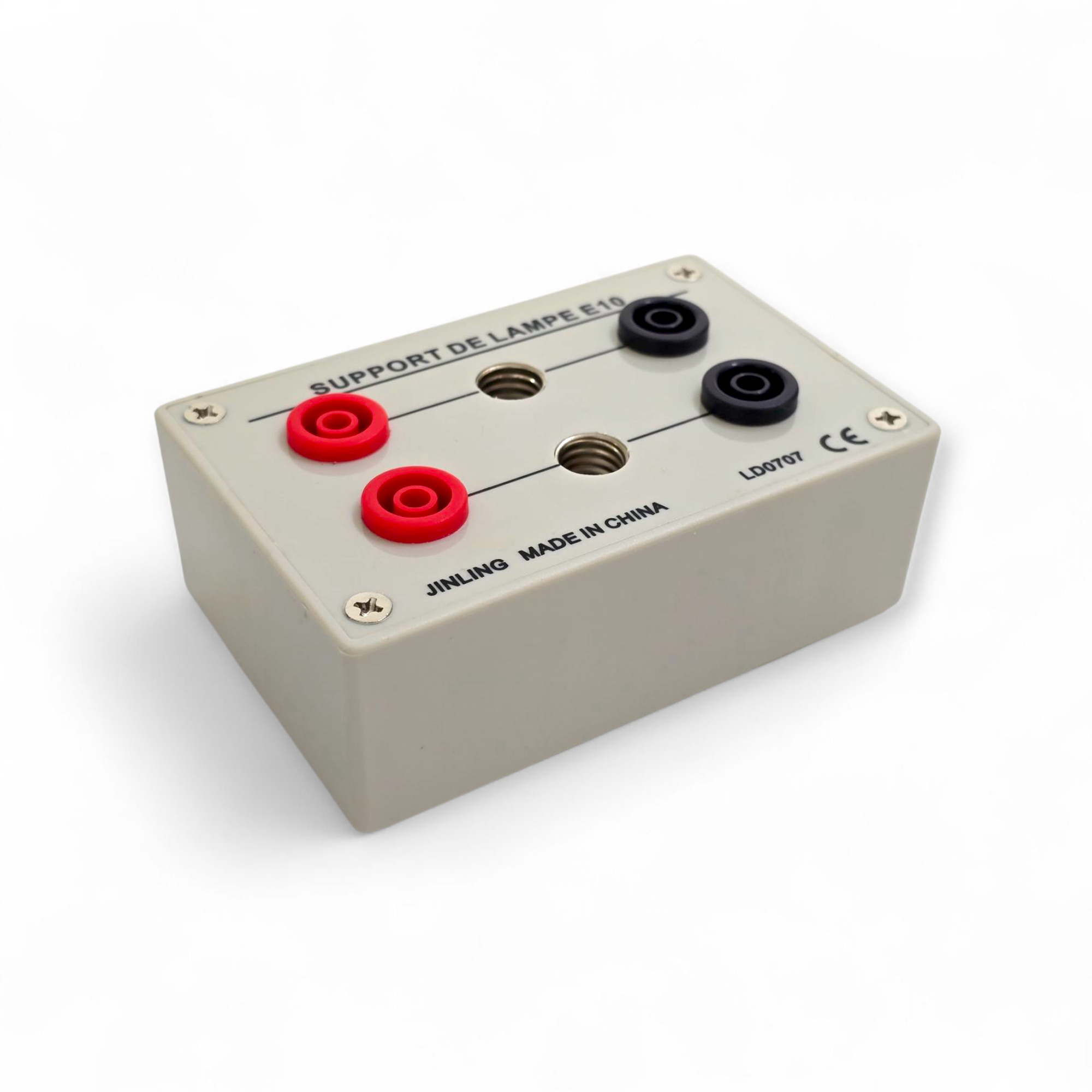 Ce dispositif est conçu pour accueillir une ampoule E10 et permet de tester son fonctionnement dans un circuit électrique. Il est couramment utilisé dans les expériences éducatives pour démontrer le rôle des lampes dans un circuit.