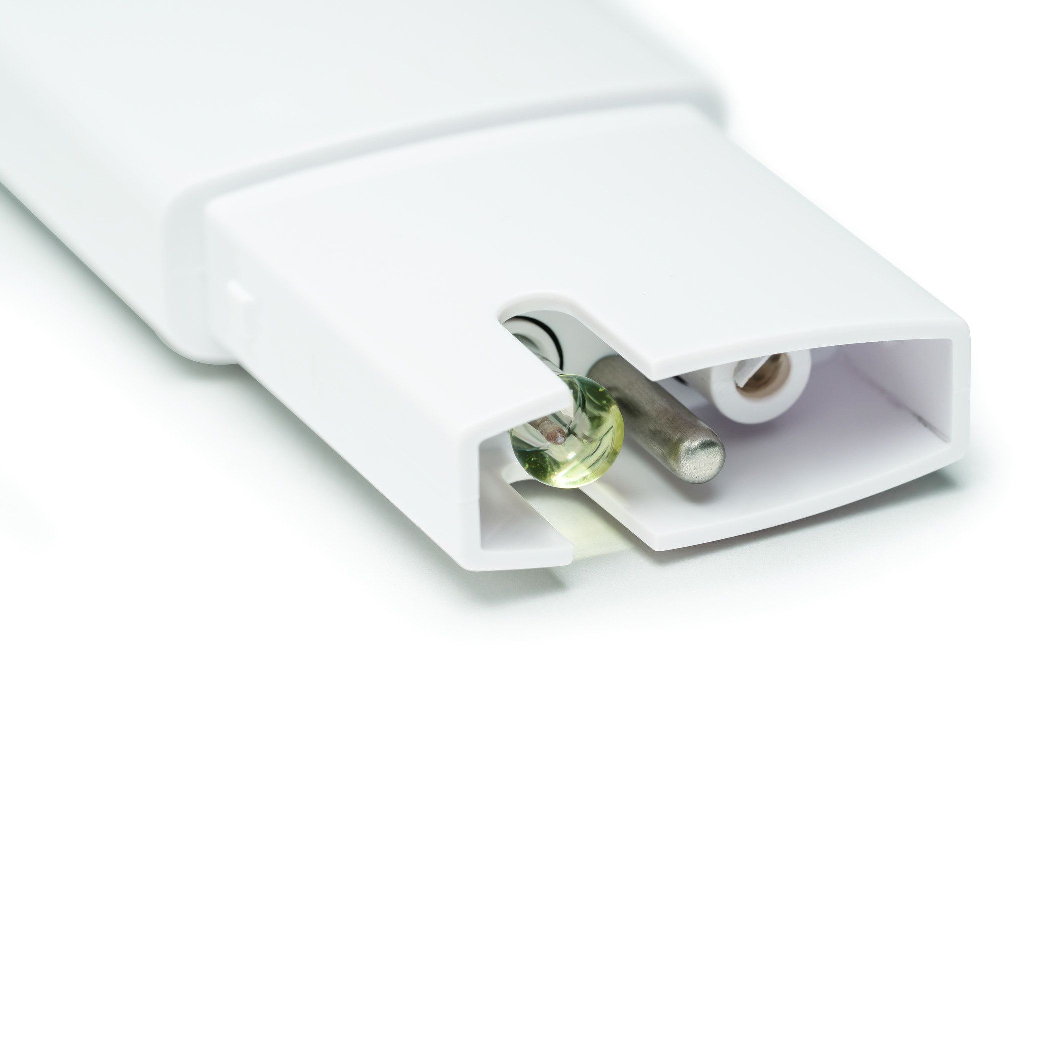 Seulement deux boutons pour le fonctionnement du testeur de niveau de pH. Un pour marche/arrêt et un pour l’étalonnage.