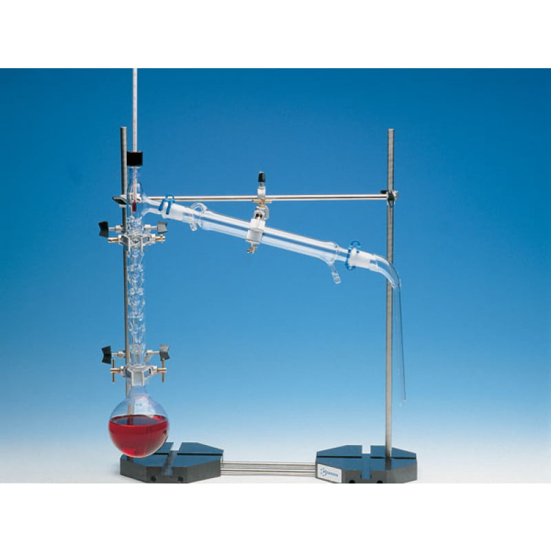 Fixée en haut d’un statif à l’aide d’une noix double, elle permet la réalisation de montages de distillation et de manipulations en mécanique, par exemple.